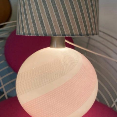 MURANO, smukkeste bordlampe, MURANO, bordlampe, retro i de smukkeste farver. Højde 32 cm, bredde nederst ca 25 cm. Der mangler montering med ledning, men der er klargjort dertil. Enorm præsentabel og ret tung. Fra røgfrit hjem. Sender på købers regning. Fast pris