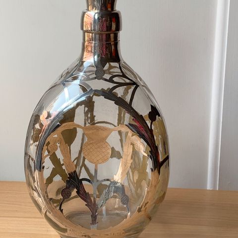 Smuk vintage krystal whiskykaraffel med sølvkrave i flot stand.