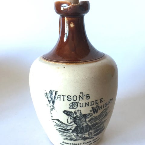 Her til din overvejelse er whiskykaraffel støbt af massiv ægte klar krystal med sølvkrave som er stemplet - 830S KRONEN DENMARK.