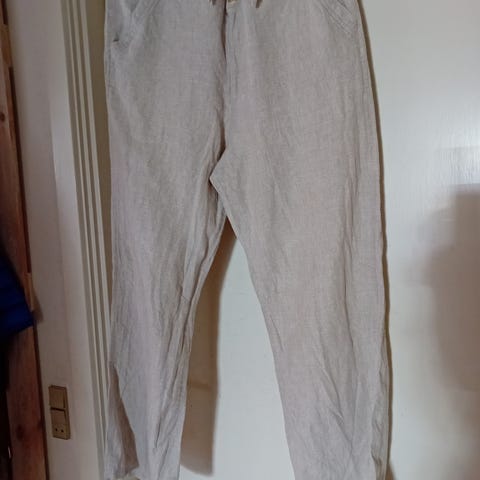 Hørbukser str L fra Samsøe-Samsøe med knap, lynlås, bindebånd,skrålommer og baglomme