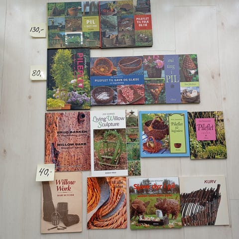 Pænt eksemplar. Udgivet af forlaget Tommeliden i 1998. Hardback udgave p i stort format på 94 sider. Bogen giver udførlige anvisninger på, hvordan man kaan flette praktiske og dekorative kurve. Opskrift på 60 forskellige kurve.