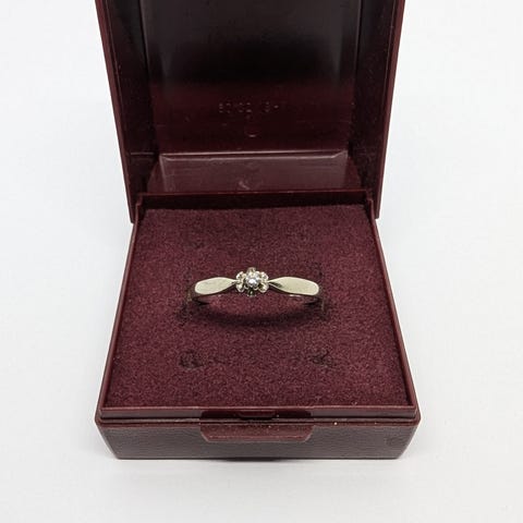 Hvidguldsring med brillianter. Der mangler en sten