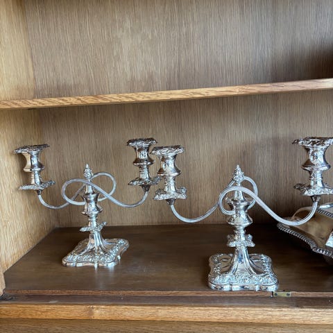 3 armet kandelaber, Sølvplet, 125 år gl.