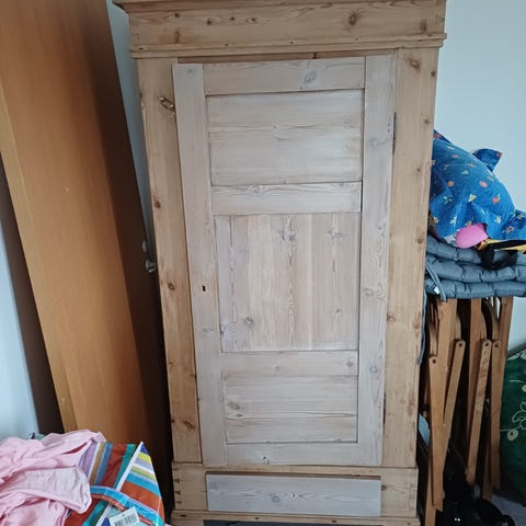 Smukt og klassisk karlekammerskab, nænsomt afsyrret for at fremhæve træets naturlige åretegninger og patina. Perfekt til dig, der elsker dansk møbeltradition, landlig stil eller ønsker et varmt, rustikt islæt i hjemmet.