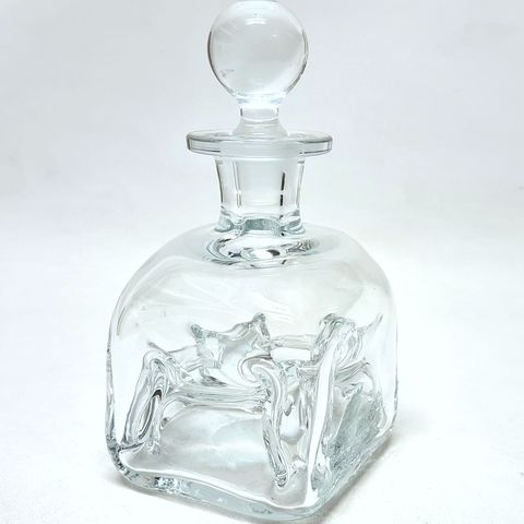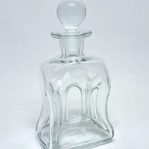 Fin karaffel / snapseflaske kaldet Gourgelette, fra serien Snapse Doctor af Michael Bang for Holmegaard, 1974