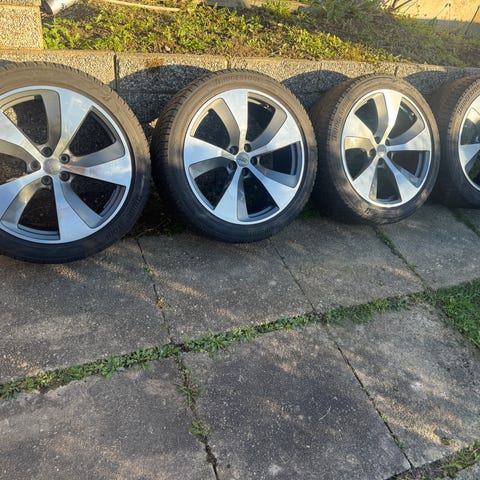 Fine brugte Audi alu fælge med brugsspor står på opslitte dæk. Passer på SQ 5 Audi