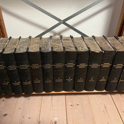 Kbh 1948-1954. Det Danske Forlag. A-Ø, 12 bind. Lidt slid på omslaget nederste kant. Ellers pæn stand. Sælges samlet for 100kr. Kan sendes men i flere pakker pga vægten.