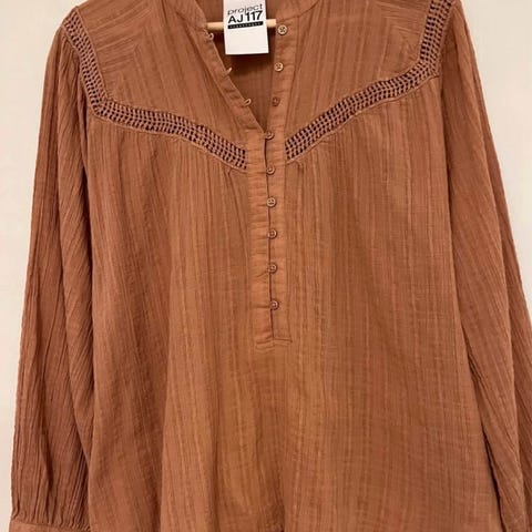 Grå / grå metallic let oversize bluse top med lille front lomme i str M