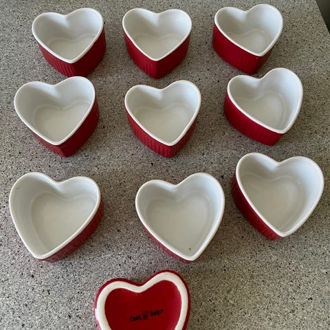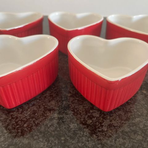 Helt nye ubrugte creme brulee hjerte skåle. 4 styks 2x2. Kun 100- for alle 4...