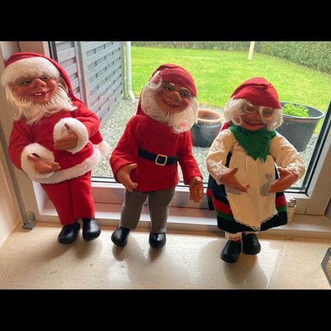 De 4 nissebørn foran de store - pr stk kr 250 (dreng i sweater er solgt)