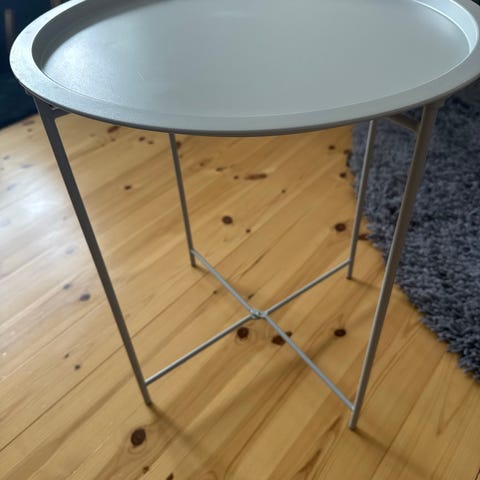Hjørnebord, b: 50 l: 50 h: 50, Lille fint hjørnebord med fine svungne metalben og få brugsspor. Afhentes i Greve.