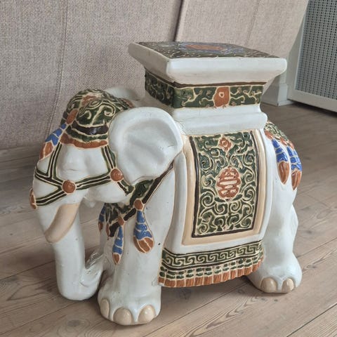 Fin hvid-beige elefant bruges som lille sofa bord eller måske med stearinlys på 🤩🤩