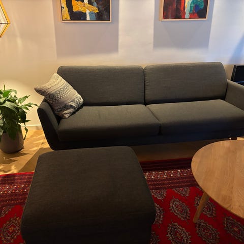 Jeg sælger en 3 personers sofa med tilhørende puf for min far, da han bor og arbejder i udlandet og lejligheden skal klargøres til udlejning.