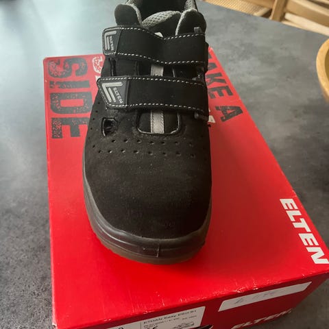 Elten sikkerhedsko, Elten sikkerhedssko sælges, da jeg ikke længere skal bruge dem. De er brugt minimalt i 5 måneder, udelukkende i sandkassen på techcollege, så de fejler intet. De er en størrelse 38, men passer også til en størrelse 39.