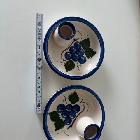 To olivenskåle. Kan også bruges til andet tapastilbehør. Aldrig brugt. Sælges samlet.