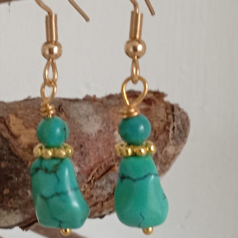 Kæde med ægte turkiser og delt med glas perler.