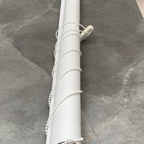Mål : bred 245 cm. Nedrulnings-længe max 240 cm. Nypris 5.400 kr. Råhvid/antikhvid. Kan nedkortes.