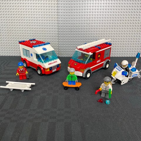 Komplet i fin stand, dog mangler et klistermærke på ambulancen, øverst foran. Med manual. Kan afhentes i Ballerup, eller sendes. Ved køb af flere annoncer, eller køb uden Fiks færdig, kontakt mig venligst.