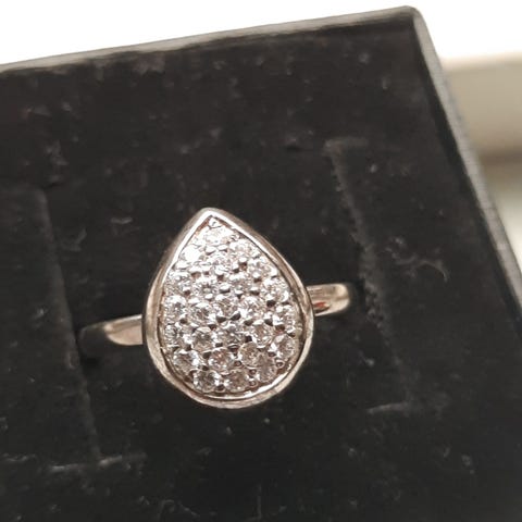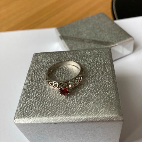 RINGEN ER 925 SØLV ,FORMET SOM HJERTE MED ZIRKONER PÅ DEN ENE SIDE OG GRAVERET, PÅ ANDEN SIDE