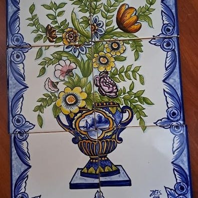 Fantastisk flot antik håndmalet Hollandsk flise - Klinke (evt til ophæng)