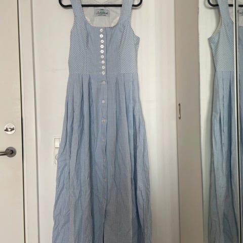 Klassisk ‘sejlerkjole’ fra det anerkendte mærke Barbour. Kjolen har lommer i siderne og har et ‘loose fit’. Ca. knælang (er selv 173 cm høj)