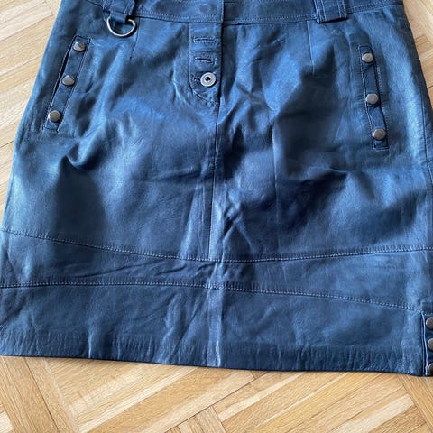 Nederdel fra Nü i slå-om look og med imiteret skind på bagsiden med pyntelommer.