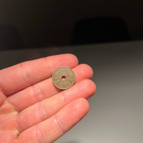 Her er en Dansk 2 øre fra 1927. Den er i ok stand (billederne er taget igennem en loop 😊)