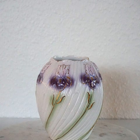 2 antikke vaser, Jugend stil, 2 vaser i glaseret stentøj fra Skønvirketiden. I naturens farver: gul, grøn, okker. Også glaseret indvendigt, hvor vaserne er rene og uden kalkrender. Velholdte uden skår eller revner. 22,5 cm høje, foroven Ø 7cm og forneden Ø 8cm. Stammer fra mine svigerforældre, Viborg egnen. Sælges samlet