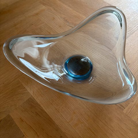 Stort originalt glasfad fra Holmegaard i flot koboltblåt glas.