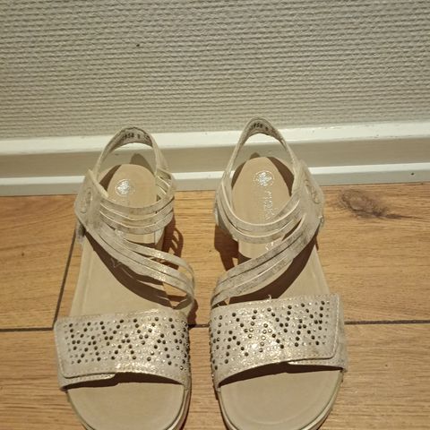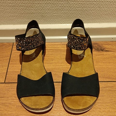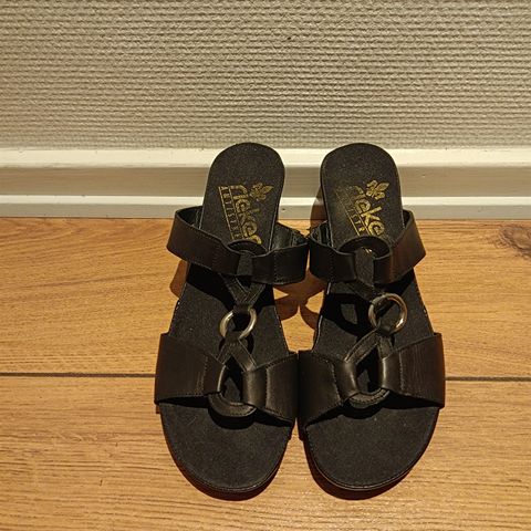 Fine damesandaler, RIEKER, skind, sort, str. 37.