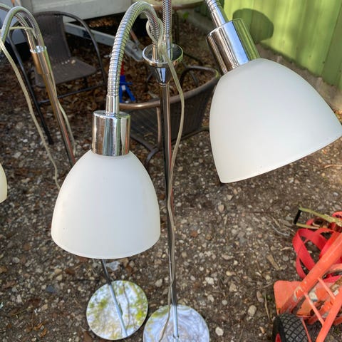 Pæn standerlampe med lysdæmper. Justerbare lampearme.