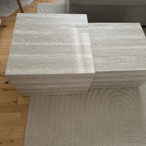 2 fine borde til det moderne hjem. De fejler intet. Nypris 4000 kr. Afhentes i Nibe. Kan evt leveres i Aalborg og omegn