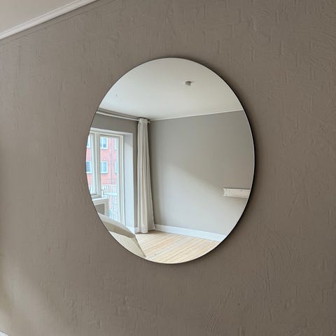 Tungt spejl i sort jern. Har brugsspor. Se billeder. Ø 60cm