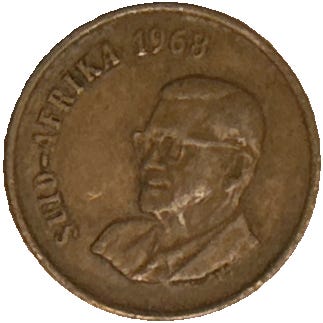 Mønt fra Østafrika år 1951 under George VI. Bronze mønt, der repræsenterer 10 cent af den afrikanske Rand. George VI 1936-52. Tekst på den ene side: EAST AFRICA 10 1951 flankeret af 4 elefantstødtænder. På den anden side: GEROGEIVS SEXTVS REX TEN CENTS.