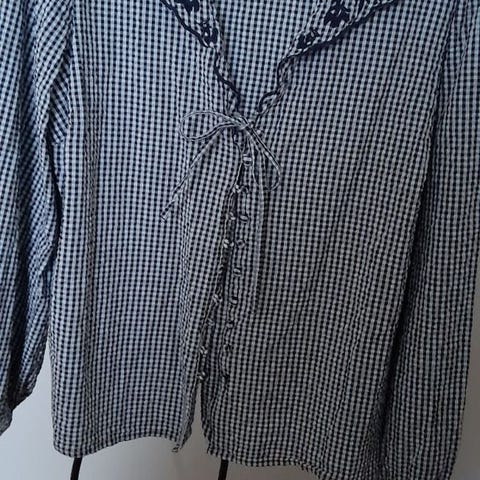 Smuk blå ternet blød let skjorte str. S i blå og hvid samt puff-ærmer