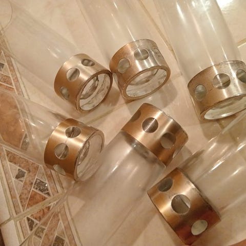 Serveringssæt i glas og i sølv look a like med patina.