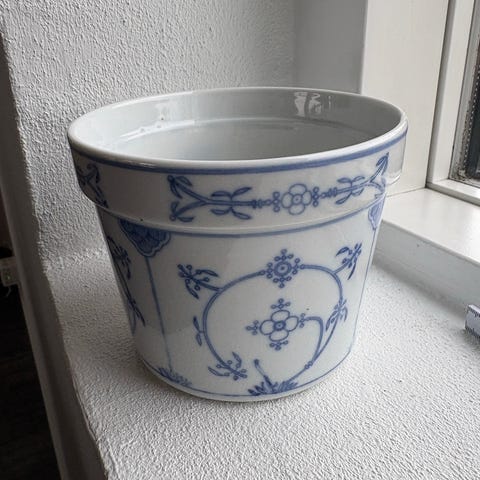 Musselmalet potteskjuler.