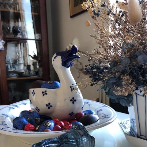 MUSSELMALET PORCELÆN SERVERINGSFAD CHARMERENDE OG FLOT PÅ FROKOST BORDET