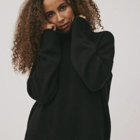Den kræser ikke, er virkelig blød og med den asymmetrisk syning gør den ligger pænt både over en tynd top eller tykkere bluse / sweater.