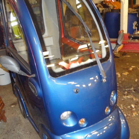 Ny kabinescooter til 2 personer med lithiumbatterier (90 km på en opladning). Den har kørt 2 ture (Vojens til haderslev og Haderslev-Årøsund-haderslev - 72 km I alt).