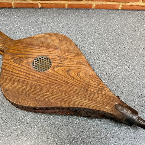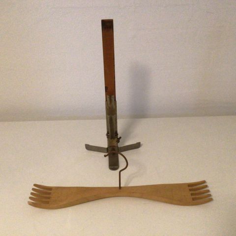Sjælden Antik træ bøjle med reklame fra gammel butik i Tønder. Se den lille krølle den har på metal ophænget og selve bøjlen har fin facon.