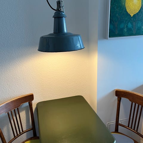 Kæmpe stor Industriel lampe lakeret i smuk koboltblå og stål.