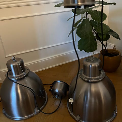 Kæmpe stor Industriel lampe lakeret i smuk koboltblå og stål