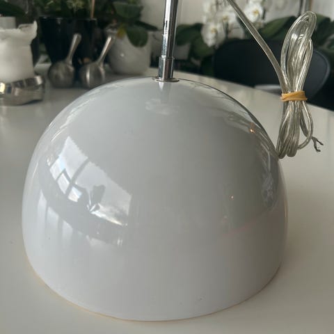 Smuk og enkel pendel/loftlampe fra svenske Markslöjd i hvid glaseret porcelæn. Klassisk halvkugleformet skærm med E17 fatning og transparent ledning. Ideel til spisebord, entré eller som hyggelig belysning i hjørner af hjemmet.
