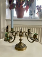 4 armet lysestage, Messing, Fin gammel messing 4 armet lysestage købt i en antik butik i London. H. uden lys ca. 18 cm diameter ca. 31 cm.