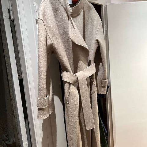 Frakke, str. 42, Harris Wharf London, Lys beige, Virgin wool, Ubrugt, Fantastisk frakke i butikkerne nu til 3900kr.