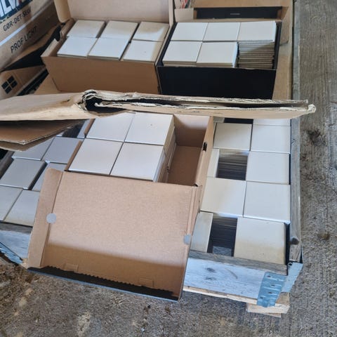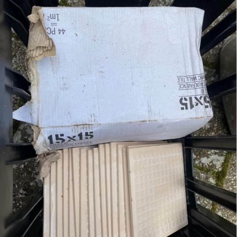 hvide fliser mat 3pakker uåbnet plus et par stykker +ca 2kg hvid fuge og ca.10kg fliseklæb.
