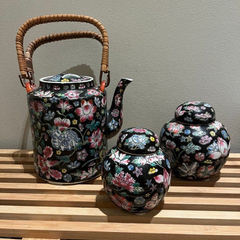 Porcelæn, Tepotte skåle og kopper, Kinesisk, Kinesisk tesæt i fin stand med lille fad, kande og fire små kopper samt to små skåle. Sælges samlet.