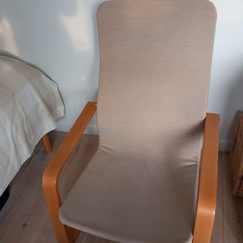 Ikea lænestol uden hynde. Har du selv hynden, kan du her få dig en meget billig lænestol. Billede 3 er et eksempel af stolen med hynde. Rammen er i pæn stand med mindre brugsspor.