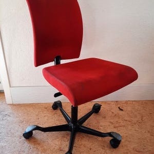 Gate stolen er en smuk og stilfuld stol i rødt uld stof. Stolen er med smukke armlæn, der ligesom resten af stellet, er i forkromet stål. Siddehøjden er ca. 46 cm. Stolen er med vippefunktion. Fembenet fodkryds i forkromet stål. Hjul: velegnet til hårde gulve. Stolen fremstår med almindelige brugsspor, såsom mindre ridser/mærker i stel og på stof. Lagerbestand: 5 stk.